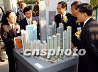 圖:香港地鐵物業(yè)夥同四大房地產商推介西九龍物業(yè) 2001年11月21日 19:41 ![]() 香港地鐵物業(yè)總監(jiān)何恒光(中),11月21日夥同恒隆集團主席陳啟宗(左一)、新鴻基地產副主席郭炳江(左二)、九龍倉集團主席李唯仁(左三)、永泰亞洲富聯(lián)國際行政總裁鄭維新等共同推介正在建設的西九龍面積達1,200萬平方尺的超大綜合發(fā)展項目。中新社記者 任晨鳴 攝 |