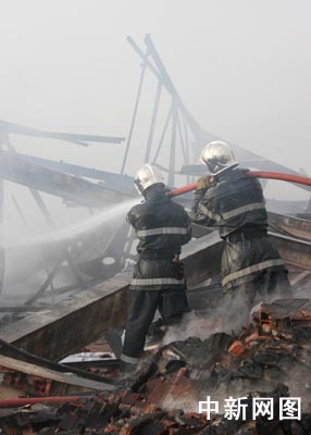 巴黎消防隊員在廢墟現(xiàn)場消除余火。作者:鐘誠