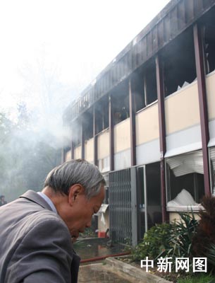 在巴黎北郊騷亂進入第八個晚上時,巴黎東北郊一家面積達2000平米的華商倉庫,三日午夜在縱火襲擊中被燒毀,東主初步估計損失超過七位數(shù)歐元。圖為倉庫的東主在面目全非的出事現(xiàn)場給了解情況的親友打電話。作者:鐘誠
