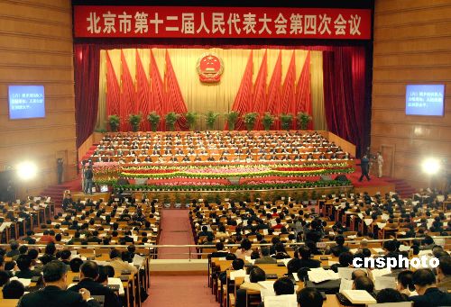 | 一月十五日,北京市第十二屆人民代表大會(huì)第四次會(huì)議在北京會(huì)議中心開(kāi)幕,北京市市長(zhǎng)王岐山作關(guān)于北京市國(guó)民經(jīng)濟(jì)和社會(huì)發(fā)展第十一個(gè)五年規(guī)劃綱要的報(bào)告, 七百余名代表出席會(huì)議。作者:張勤