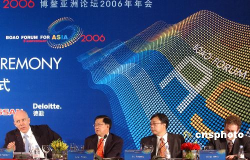 | 二月二十二日,博鰲亞洲論壇在北京舉行的新聞發(fā)布會(huì)上宣布,博鰲亞洲論壇二零零六年年會(huì)將于四月二十一日至二十三日在海南博鰲舉行,此次年會(huì)的主題為“亞洲尋求共贏——亞洲的新機(jī)會(huì)”。圖為發(fā)布會(huì)現(xiàn)場(chǎng)。 作者:韓藝冰