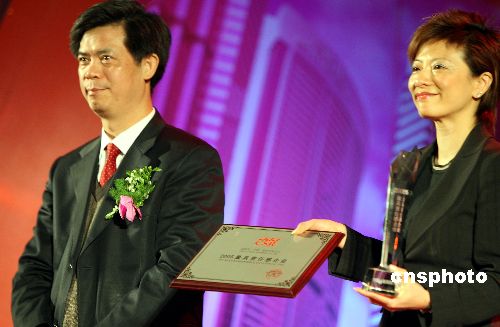 | 國務(wù)院僑務(wù)辦公室、中國新聞社指導(dǎo),《中國新聞周刊》雜志社主辦的“中國·企業(yè)社會責(zé)任國際論壇”——“最具責(zé)任感的企業(yè)”頒獎典禮二月二十二日晚在北京隆重舉行。諾基亞(中國)投資有限公司等十家企業(yè)獲得“最具責(zé)任感企業(yè)獎”,中國新聞社總編輯郭招金(左)為獲獎企業(yè)代表頒獎。 作者:廖文靜