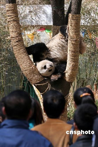 |   3月28日,來自四川成都的大熊貓“哈蘭”在無錫錫惠名勝區(qū)動物園的熊貓館首次與廣大游客見面!肮m”于27日下午搭乘東方航空公司的航班抵達無錫,很快就適應(yīng)了動物園新家的環(huán)境。按計劃,它將在無錫“客居”一年。首次來無錫的大熊貓“哈蘭”今年已22歲,在全球大熊貓譜系中的編號為287,體重100公斤!肮m”是成都大熊貓繁育研究基地有名的“英雄父親”,已繁育了19胎共25個后代。作者:宦瑋  |  |  |