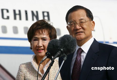 | 圖:中國(guó)國(guó)民黨榮譽(yù)主席連戰(zhàn)北京機(jī)場(chǎng)發(fā)表演講