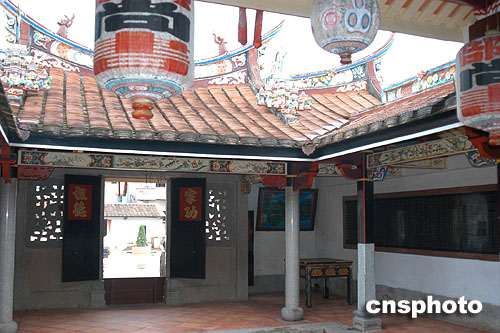 連戰(zhàn)福建漳州馬崎祖籍地宗祠“思成堂”內(nèi)景。