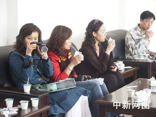 在位于德力戈爾民族經(jīng)濟開發(fā)區(qū)的大慶妙士乳業(yè)公司,網(wǎng)絡(luò)媒體的記者們品嘗剛剛下線的優(yōu)質(zhì)乳品。