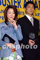 ![]() 香港演星劉德華29日在香港繽紛荷里活餐廳領(lǐng)取2001年港臺最受歡迎男演員獎項(xiàng)時(shí),接受影迷贈送的祝賀禮物。中新社記者 洪少葵 攝 ![]() 百視達(dá)公司主辦的“2001年港臺最受歡迎的男女演員”頒獎禮,29日在香港繽紛荷里活餐廳舉行,主辦機(jī)構(gòu)將獎項(xiàng)頒發(fā)予臺灣與香港觀眾投票選出的男女演員得獎?wù)邉⒌氯A、鄭秀文。中新社記者 洪少葵 攝