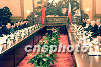 江澤民對發(fā)展中國與馬耳他關系提出三點希望 2001年07月02日 21:32 ![]() 國家主席江澤民二日在北京與馬耳他總統(tǒng)德馬爾科(右二)會談。中新社記者 滿會喬 攝