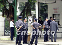 組圖:廣州警方加強美領(lǐng)事館的保安 2001年09月12日 10:48 ![]() 十二日清晨,美國駐廣州總領(lǐng)事館門前的保安工作明顯加強,這是昨天美國受到恐怖襲擊之后,廣州警方采取的有力措施。中新社圖 梁永強 攝 ![]() 美國受到恐怖襲擊之后,十二日美國駐廣州總領(lǐng)事館如常辦公,門前排隊等候簽證的隊伍秩序井然。中新社圖 梁永強 攝