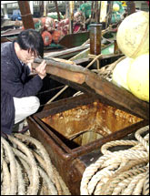 圖文:25中國偷渡客被拋尸大海 22人身份已確認 2001年10月10日 11:00 ![]() 警方查看偷渡客藏身的漁船 中新網(wǎng)北京10月10日消息:通過對生存者的盤問,韓國警方已查明準備偷渡入境而窒息死亡的25名中國人中的22人身份。 據(jù)《朝鮮日報》報道,這些人都是來自中國福建省的男性,如偷渡成功就交給蛇頭6萬~6.5萬元人民幣。 據(jù)該報昨天報道,60多名中國偷渡客躲藏在一艘韓國漁船里企圖偷渡到韓國,在途中26人因窒息而死亡,為消滅犯罪證據(jù),韓國偷渡集團竟將死者的尸體全部扔進了海里。其余的34人在麗水市附近的大境島登陸上岸,并于當天全被拘捕。 初步判斷,這些偷渡客是因為躲在沒有換氣口的儲魚艙里而窒息死亡的。據(jù)介紹,這些儲魚艙高3米,只有3米大小的地方連站直都很困難。 韓國警方目前正就整個案情進行調(diào)查。
