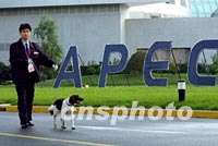 ![]() 上海警方出動(dòng)警犬在APEC會(huì)議國(guó)際新聞中心巡邏,全球三千記者十四日開始進(jìn)入清晨啟用的新聞工作區(qū)。中新社記者 賈國(guó)榮 攝 |