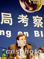 ![]() 國(guó)際展覽局考察團(tuán)今日在滬舉行新聞通氣會(huì),會(huì)上國(guó)際展覽局主席吉爾斯·諾蓋斯表示,如果上海申辦成功,將是世博會(huì)首次在發(fā)展中國(guó)家舉辦。因此,國(guó)際展覽局對(duì)上海申博興趣濃厚。圖為國(guó)際展覽局主席吉爾斯·諾蓋斯回答記者提問(wèn)。中新社圖 湯彥俊 攝