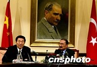 圖:朱镕基談中土共同打擊“東突”恐怖分子 2002年04月17日 09:49 ![]() 朱镕基總理4月16日在安卡拉與土耳其總理埃杰維特會(huì)談后,就中土共同打擊“東突”等問(wèn)題共同會(huì)見(jiàn)記者。作者:岳堯