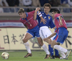 比賽場面精彩紛呈 日本與哥斯達黎加熱身戰(zhàn)平 2002年04月17日 21:26 ![]() 日本隊主場與哥斯達黎加1:1戰(zhàn)平
