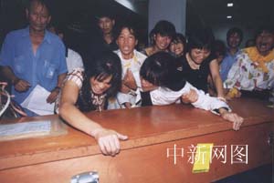 圖文:在以色列遇難的兩名福建勞工遺體運(yùn)抵福州 2002年08月07日 22:43 ![]() 圖為福建中福公司副總經(jīng)理林炎,向死難者許恒勇、李斌的家屬發(fā)送慰問金。中新社記者 劉可耕 攝 ![]() 圖為許恒勇的親屬哭倒在他的棺木上。中新社記者 劉可耕 攝 ![]() 圖為李斌的一雙兒女披麻戴孝迎接父親棺木。中新社記者 劉可耕 攝 中新社福州八月七日電 (記者 陳悅)今晚七時(shí)許,從香港起飛的MU五七八航班運(yùn)載著在上月以色列特拉維夫爆炸案中遇難的福建勞工許恒勇和李斌的遺體在福州長樂機(jī)場降落。七時(shí)半,等候多時(shí)的親屬們迎來了遺體,隨即護(hù)送靈柩返回福州平潭故鄉(xiāng)。 等候遺體時(shí),兩人的親屬都沉浸在巨大的悲痛中。李斌和許恒勇的妻子自出發(fā)起就痛哭不絕,此時(shí)已聲音嘶;許恒勇的妹妹則突然昏厥過去,良久才蘇醒。許恒勇的叔叔介紹,兩人的親屬是今日早些時(shí)候冒著暴雨從平潭啟程的,許家家境不好,許恒勇是家中的頂梁柱,他的去世給家人帶來巨大打擊,他十三歲的大兒子受刺激精神恍惚,一度住院。李斌的親屬亦介紹,李斌的岳父聽到噩耗后不久就去世了。 七時(shí)半許,靈柩被運(yùn)出機(jī)場貨運(yùn)出口,家屬們護(hù)送棺木運(yùn)上車。據(jù)稱,兩人原所屬的福建中福公司亦來機(jī)場接靈柩并為兩人辦理相關(guān)手續(xù)。該公司副總經(jīng)理林炎向兩人送上該公司職員募集的捐款。林炎介紹,以色列還將派官員及保險(xiǎn)公司職員來北京商討賠償事宜。據(jù)悉,二人雖均屬合法入境,但許恒勇已“跳槽”離開原打工單位,而李斌屬超期非法滯留,故二人獲得的賠償標(biāo)準(zhǔn)將無法完全比照在“四·一二”耶路撒冷爆炸案中遇難的福建勞工獲得的以方賠償。(完)