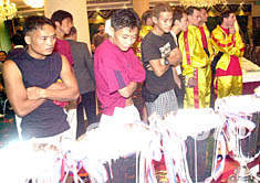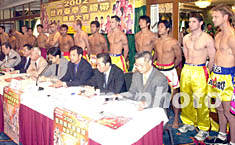 ![]() 2002世界泰拳金腰帶慈善大賽組委會(huì)十六日在澳門舉行新聞發(fā)布會(huì),參賽的二十名各國選手在會(huì)上亮相。據(jù)悉,本次大賽的所有收益將撥捐中國水災(zāi)地區(qū)、澳門同善堂、澳門紅十字會(huì)及澳門工會(huì)聯(lián)合會(huì)職工福利基金會(huì)。李剛 攝
