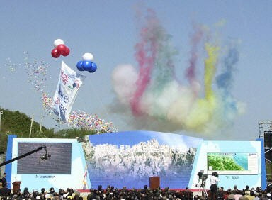 韓國(guó)官員在位于西海岸附近的現(xiàn)場(chǎng)按動(dòng)了象征連接工作開(kāi)始的按鈕,整個(gè)工作將于周四正式開(kāi)始,屆時(shí)清除非軍事區(qū)里的地雷的工作將全面展開(kāi)。