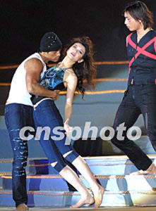 在2002年中國廣州(新塘)國際牛仔服裝節(jié)上,香港設計師彭少軒的作品四日晚在廣東新塘亮相,中國名模姜培琳出場時的特殊造型使人們大開眼界。作者:趙振清