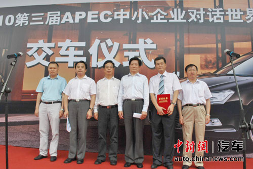 中新網(wǎng)7月7日電 日前,在福州國(guó)際會(huì)展中心,東風(fēng)雪鐵龍市場(chǎng)與對(duì)外宣傳部副部長(zhǎng)王濤將一把特別制作的鑰匙,交給工信部中國(guó)中小企業(yè)發(fā)展促進(jìn)中心主任袁普,標(biāo)志著由20輛東風(fēng)雪鐵龍C5組成的“第三屆APEC中小企業(yè)對(duì)話世界500強(qiáng)財(cái)富論壇”貴賓車(chē)隊(duì)正式投入使用,在6月30日至7月2日期間,全程為與會(huì)的中國(guó)政商精英和世界級(jí)經(jīng)濟(jì)領(lǐng)袖提供服務(wù)。