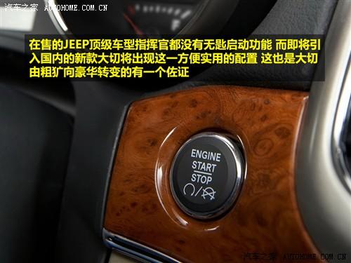 在轉(zhuǎn)向柱附近我們看到了無匙啟動按鈕,目前在售的JEEP頂級車型指揮官都沒有此功能,也許是為了追求JEEP一貫的越野復古風格,而現(xiàn)今的2011款大切將出現(xiàn)無匙啟動,確實是一個方便實用的配置。