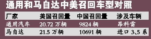 這些在美國召回的車,在中國是否有出售呢?答案是肯定的。據(jù)本報昨天查詢,通用和馬自達(dá)的上述缺陷車型,在華銷售數(shù)量涉及近兩萬輛。