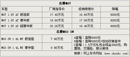 據MG名爵經銷商處銷售人員介紹,目前MG7和MG3 SW都有充足的現車,只有部分車型需要預訂,MG7最高可優(yōu)惠8千元,而MG3 SW則有三重好禮可選其一,當然最直接的就是直降8千元,而1.5萬元的大禮包的優(yōu)惠也挺大的,如果你喜歡個性車就選擇炫動改裝還可在優(yōu)惠五千元。