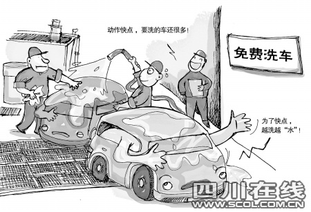 到4S店免費(fèi)洗車本來(lái)是一件很愉快的事,可是如果洗車工只沖幾下車子的表面,里面的腳墊根本不給你洗,而且外面泥巴也沒(méi)沖干凈,恐怕你再也高興不起來(lái)了。最近,一些車主向本報(bào)“愛(ài)車114”反映,現(xiàn)在有些4S店洗車越來(lái)越“水”了,不僅不洗車?yán)锩妫瓦B車外也洗不干凈。他們想問(wèn),既然4S店承諾了免費(fèi)洗車,可否要求洗干凈點(diǎn)?