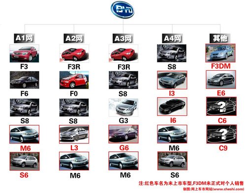 從上面的比亞迪詳細(xì)新車規(guī)劃中可以看出,比亞迪未來不僅有A1、A2、A3銷售網(wǎng)絡(luò),還將有A4網(wǎng)絡(luò),而新能源車放在哪個網(wǎng)絡(luò)暫時還不得而知。在四張網(wǎng)絡(luò)下,將推出M6、L3、I6、I3、E6、S6、G6、C6、C9等全新車型,而F3DM雖然已經(jīng)公布售價,但還未對個人銷售,因此也算在比亞迪的規(guī)劃新車中。這其中M6、G6、S6預(yù)計(jì)將在明年上市,分別為MPV、B級轎車、SUV車型。