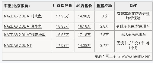 隨著新款馬自達(dá)6的即將上市銷售,目前銷售的老款車型也出現(xiàn)了較大幅度的松動。據(jù)網(wǎng)上車市價格監(jiān)測系統(tǒng)顯示:目前購買馬自達(dá)6的消費(fèi)者最高可享受到最高3萬元的促銷優(yōu)惠,最低售價已經(jīng)跌破了15萬元關(guān)口,對于一款中級車而言,這樣的價格已經(jīng)貼近A級車的身價了。