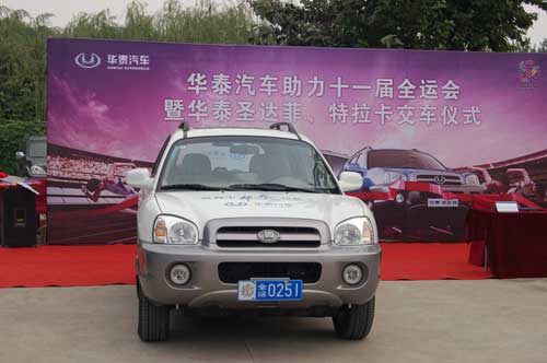 據(jù)悉,第十一屆全運(yùn)會(huì)開(kāi)幕式將于2009年10月16日舉行,華泰汽車(chē)交付的22輛華泰圣達(dá)菲和華泰特拉卡將從即日起往返于各大賽區(qū),為一萬(wàn)多人的開(kāi)幕式和三千多人的閉幕式的排練、演出工作提供全程服務(wù)。