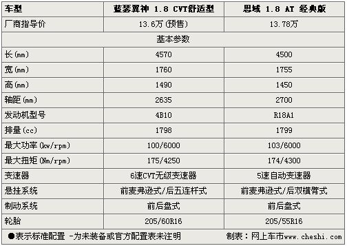 這次選擇的兩個車款是價格比較接近的,僅差1800元且都是自動擋,首先在基本參數(shù)上,藍(lán)瑟翼神要比思域車身略長一些,但在軸距上思域要略有優(yōu)勢,這在內(nèi)部空間上將有所體現(xiàn)。在動力上,藍(lán)瑟翼神與思域的1.8L發(fā)動機(jī)在參數(shù)上比較接近,但在變速器上藍(lán)瑟翼神裝備的是6速CVT變速器更先進(jìn)一些。在懸掛系統(tǒng)方面,藍(lán)瑟翼神的后五連桿式也要比思域的雙橫臂式乘坐舒適性更好一些,但維護(hù)成本要高一些。
