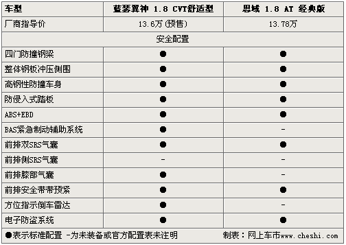 在安全配置上,藍(lán)瑟翼神配置了前排雙氣囊、膝部氣囊、四門防撞梁等被動安全裝備,而在主動安全配置上,ABS、EBD、BAS等都為標(biāo)配,而在看思域,要比藍(lán)瑟翼神遜色一些,少了BAS、膝部氣囊、倒車?yán)走_(dá)等安全配置。