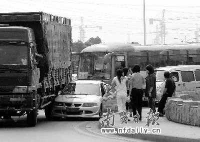 首先要說的自然就是小車追尾大貨車的事故,這是最典型的中國特色高速公路事故,而小車車上人員的傷亡率在這樣的事故當(dāng)中高得驚人。路上跑著的大貨車,多半性能低下,典型的老牛拉破車,遇到點(diǎn)坡度,只能掛著一擋慢慢晃。加上大卡車的超載常態(tài)化,與性能日益進(jìn)步的私家車相比,卡車與小車的速度落差懸殊,對(duì)小車的安全造成了極大的威脅。另外大卡車司機(jī)中缺乏職業(yè)操守和道路安全常識(shí)的并不在少數(shù),隨意霸占小車道行駛或是?柯愤呅捃嚦蔀榧页1泔。車尾防護(hù)欄的缺失,大卡車成了大禍車,遠(yuǎn)高于小轎車車頭高度的卡車車尾,就如同一個(gè)個(gè)血盆大口,我們?cè)撊绾味惚芩鼈兊耐{?