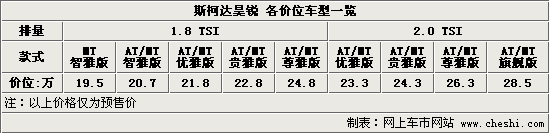 上海大眾斯柯達(dá)推出的全新B級車Superb昊銳,將于8月18日上市宣布價格。目前首批展車已經(jīng)運(yùn)抵北京部分斯柯達(dá)4S店,近期部分經(jīng)銷商還將舉辦小規(guī)模的試駕賞車活動。與此同時記者也以消費(fèi)者的身份詢問了北京地區(qū)多家斯柯達(dá)授權(quán)經(jīng)銷商,通過詢問我們得知了斯柯達(dá)昊銳的預(yù)售價格區(qū)間為19.5-28.5萬元,共分為9款車型: