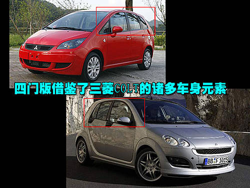 在最初銷售的車型ForFour銷量下滑后,這將是第二次嘗試開發(fā)四門版車型的模式,這種模式,如上圖所示,是奔馳與三菱在COLT的基礎上共同開發(fā)的車型。