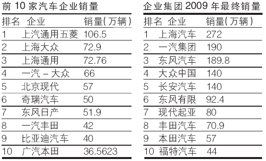 2009年國(guó)內(nèi)車市各細(xì)分市場(chǎng)的銷量份額進(jìn)行了重新布局。最直接的反映就是車企的銷量排行榜也出現(xiàn)了新的變化,以經(jīng)濟(jì)型車為主力產(chǎn)品的車企也全面豐收。同時(shí),國(guó)內(nèi)品牌集中度也進(jìn)一步加深,通用大眾占據(jù)了總銷量的四分之一。