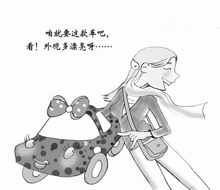 “大多數(shù)女性購車者購車僅憑著自己的第一印象,對車子外形要求往往特別挑剔,第一眼相不中的車型,無論性能如何好、別人如何推薦,一般都不再考慮,因此,一些外形特別引人注目的車型往往比較討巧!北本┈F(xiàn)代某4S店銷售人員告訴記者,女性購車與男性明顯的不同就是過于感性。“外觀是女性買車時最關(guān)注的問題。女性顧客選車時,在一定價位內(nèi)的車型中,往往先看對外形和顏色是否滿意,然后再了解車的其他性能!