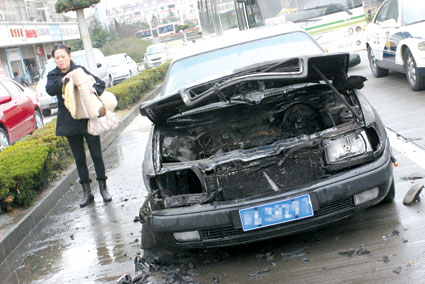 2008年10月26日上午,謝先生和平時(shí)一樣駕車上班。正當(dāng)他發(fā)動(dòng)那輛已經(jīng)開(kāi)了3年多的雙環(huán)車準(zhǔn)備出發(fā)時(shí),意想不到的事情發(fā)生了!败囎硬艈(dòng),還未起步,透過(guò)前擋風(fēng)玻璃,我看到有一股煙從發(fā)動(dòng)機(jī)艙中升起。”謝先生說(shuō),看到這場(chǎng)景,他本能反應(yīng)就是趕緊拉開(kāi)車門逃出了車。