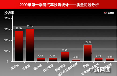 中新網(wǎng)4月24日電 日前,中國質(zhì)量協(xié)會用戶委員會、車人網(wǎng)聯(lián)合發(fā)布了2009年一季度中國汽車產(chǎn)品質(zhì)量與服務質(zhì)量分析報告。統(tǒng)計顯示,本季度的投訴中有關異響和輪胎的投訴仍呈上升趨勢。
