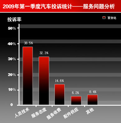 中新網(wǎng)4月24日電 日前,中國質(zhì)量協(xié)會用戶委員會、車人網(wǎng)聯(lián)合發(fā)布了2009年一季度中國汽車產(chǎn)品質(zhì)量與服務(wù)質(zhì)量分析報(bào)告。統(tǒng)計(jì)顯示,在關(guān)于汽車產(chǎn)品服務(wù)質(zhì)量的投訴中,久修不好仍是引發(fā)消費(fèi)者投訴廠家服務(wù)質(zhì)量的最主要原因。