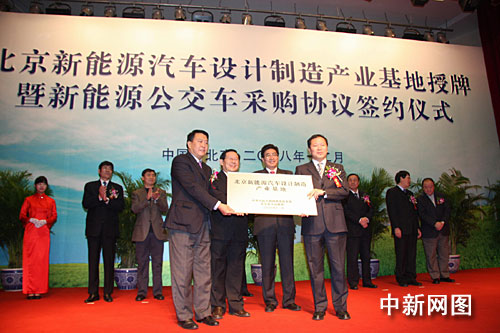 中新網(wǎng)1月9日電 日前,北京新能源汽車設(shè)計(jì)制造產(chǎn)業(yè)基地授牌暨新能源公交車采購協(xié)議簽約儀式在福田汽車舉行,國(guó)家科技部和北京市政府聯(lián)合向福田汽車授予了北京新能源汽車設(shè)計(jì)制造產(chǎn)業(yè)基地牌匾。