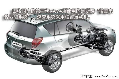 但值得注意的是,之前兩代RAV4采用的都是全時四驅系統(tǒng),與此相配合發(fā)動機也使用了縱置的設計。而即將國產的第三代RAV4所使用的是所謂“按需電控四驅系統(tǒng)”(Electronic On-DeMand 4-wheel drive)。這套系統(tǒng)采用橫置發(fā)動機,在需要時通過液力粘性耦合器將動力傳至后輪。
