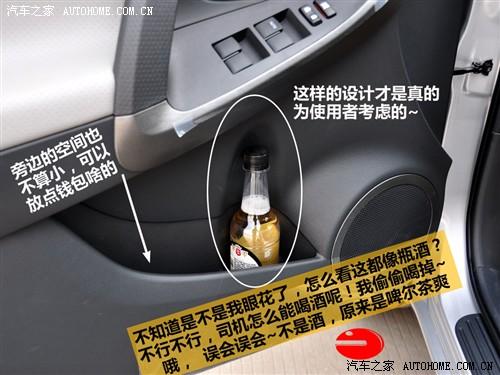 說RAV4的儲物功能,要從頭說起。遵循先左后右的習慣,我們就從左前車門說起。前車門有儲物格是很平常的,不過除此以外,RAV4為我們經(jīng)常會喝的600ml規(guī)格飲料設計了很妥貼的位置。后車門沒有其他儲物功能,但只有這一個放飲料瓶的位置就足夠貼心了,因為確實不是擺樣子的,非常實用。