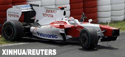 5月10日,豐田車隊車手特魯利駕駛的賽車發(fā)生碰撞后停下。當(dāng)日,F(xiàn)1西班牙大獎賽落幕,布朗GP車隊的英國車手巴頓奪得冠軍。新華社/路透