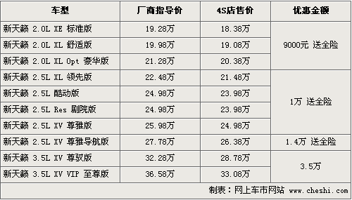 據(jù)4S店銷售人員介紹,目前消費(fèi)者購(gòu)買新天籟2.0和2.5排量車型分別贈(zèng)送價(jià)值8000元左右的全車保險(xiǎn),除此之外,現(xiàn)車現(xiàn)金優(yōu)惠從9000元-3.5萬(wàn)元不等。其中2.0排量現(xiàn)車優(yōu)惠9000元,優(yōu)惠后最低僅售18.38萬(wàn),2.5L低配版優(yōu)惠1萬(wàn),高端導(dǎo)航版優(yōu)惠1.4萬(wàn),3.5排量則最高達(dá)到了3.5萬(wàn)現(xiàn)金優(yōu)惠。目前2.0L和2.5L排量車型有黑色、白色、紫色等現(xiàn)車供應(yīng),但數(shù)量有限,部分車型還需要預(yù)訂。