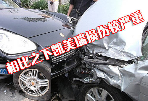 凱美瑞車頭的左側(cè)已經(jīng)完全損毀,而車身較的保時捷卡宴左側(cè)輪胎輪轂以及懸掛系統(tǒng)受到了不同程度的損傷。維修方面,凱美瑞顯得要更為復(fù)雜一些,而進口的保時捷卡宴維修費用將會很高。