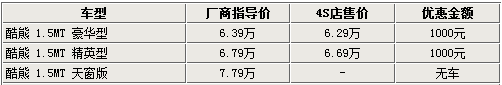 據(jù)長城汽車4S店銷售人員介紹,長城酷熊豪華型和精英型都已經(jīng)有大部分顏色的現(xiàn)車到店,消費者可以到店提現(xiàn)車。但酷熊天窗版由于廠家并沒有投產(chǎn),導(dǎo)致沒有現(xiàn)車,而且也不能接受預(yù)訂。另外,銷售人員表示,目前購買酷熊車型可給出千元的現(xiàn)金優(yōu)惠,對于消費者而言無疑是一個好消息。