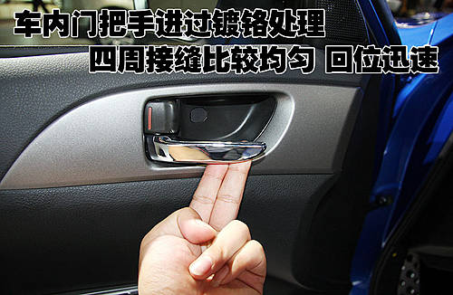 斯巴魯翼豹四只車門拉手的顏色都與車身同色,開啟車門時發(fā)現(xiàn)車門拉手部分做工比較細(xì)致,無任何松垮感覺。