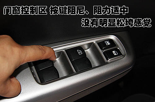 駕駛員側(cè)車門控制區(qū)集成了門窗以及中央門鎖控制鍵,整體做工十分細(xì)致,間隙均勻。使用時發(fā)現(xiàn)各按鍵的阻力適中,沒有明顯松垮的感覺。