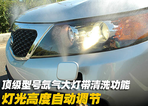HID氙氣前大燈與極具起亞家族特色的“老虎嘴”狀散熱格柵直接相連,燈內采用黑底設計加上雙圓燈組的布局,讓全新索蘭托在SUV的剛毅粗獷中又添加了幾分銳利的鋒芒。同時帶有大燈清洗和自動調節(jié)功能。